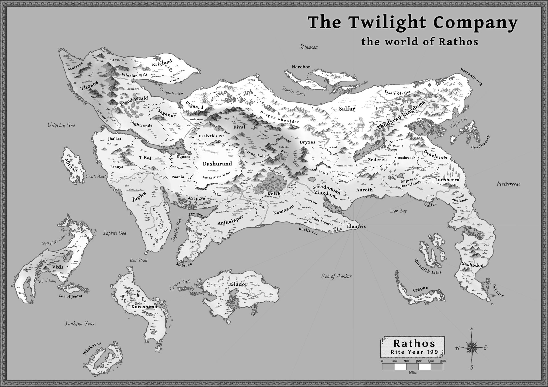 Along the way he befriends dwarves, elves, demonkin, (and maybe the goblin) to form the Twilight Company, a group committed to saving Rathos—as long as the contract pays well.